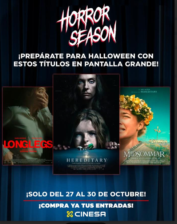 Entre los días 27 y 30 de octubre, Cinesa llevará a cabo un mini ciclo de Halloween con títulos como Longlegs, Hereditary y Midsommar, ofreciendo a los espectadores una selección cuidada de terror contemporáneo y clásico. El 31 de octubre por la tarde, la compañía proyectará un ciclo especial con Háblame, Sting Araña Asesina, Strangers Capítulo 1 y Together, acompañado de su tradicional Maratón de Halloween en Cinesa Mallorca Fashion Outlet, que incluirá además de estos títulos Immaculate y un filme sorpresa. Las entradas ya están disponibles en la web de Cinesa.