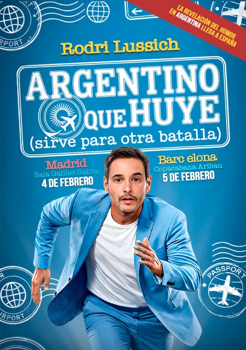 El presentador y humorista argentino Rodri Lussich desembarca en España con “Argentino que huye (sirve para otra batalla)”, un monólogo frontal, autobiográfico y ferozmente divertido que combina crítica social, confesiones personales y humor sin corrección política. La gira comienza el miércoles 4 de febrero en la Sala Galileo Galilei de Madrid y continuará por Barcelona, Valencia, Málaga y Murcia.