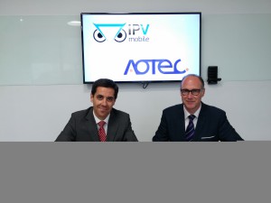 La jornada comenzó con la firma de un acuerdo de colaboración entre IPV y AOTEC que permitirá ampliar la oferta Multi Play de solución de video vigilancia en la nube, denominada MobilWatch. El presidente de AOTEC Servando Sánchez y José A. Martínez, Presidente de IPV Mobile fueron los encargados de cerrar el acuerdo.