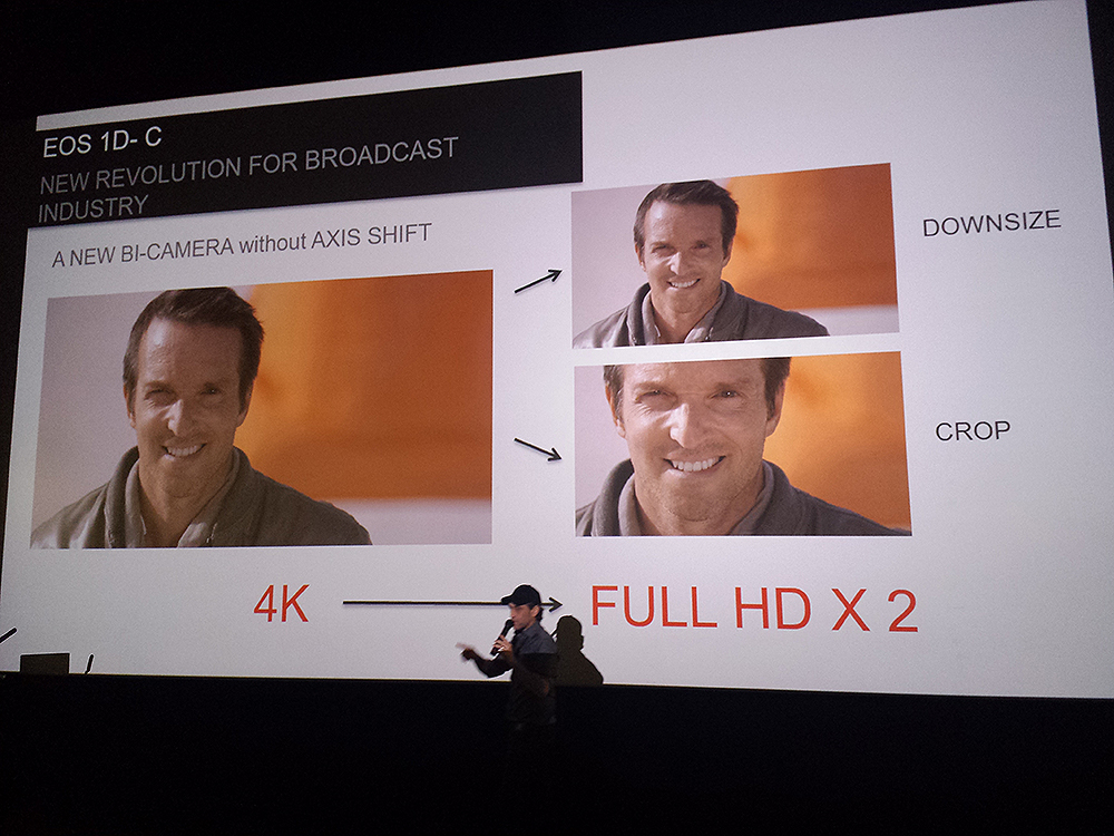 El acto, celebrado en la Academia del Cine se iniciaba con un clásico de la casa Canon y Mistika. Sebastien Devaud, realizador francés, contaba sus últimas experiencias con la gama de aquella y el software español. Para Sebastien, pragmático a la hora de trabajar con sus lentes, la principal baza de Canon sigue siendo la capacidad para intercambiar sus objetivos (en su gama EF y EF cinema) en los cuerpos Cinema EOS System, la facilidad de su manejo y los buenos resultados que los acompañan. Destacaba la EOS 1D-C para las grabaciones y emisiones en broadcast debido a su capacidad para grabar en 4K y la posibilidad de realizar planos detalle (crops) con una calidad Full HD.