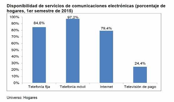 Los hogares que disponen de Internet alcanzaron un 79,4% del total, según los datos del Panel de Hogares CNMC correspondientes al primer semestre de 2015. Todos los servicios de comunicaciones electrónicas aumentaron en penetración: Internet y la televisión de pago, muy significativamente, con porcentajes de crecimiento elevados desde el primer semestre de 2014: un 13,4% en el caso de Internet y un 11,4% para la televisión de pago.