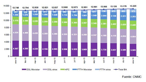 Así lo constata el último informe de la CNMC (Comisión Nacional de los Mercados y la Competencia) referentes al mercado de las telecomunicaciones del mes de enero de 2016.