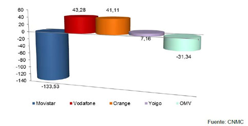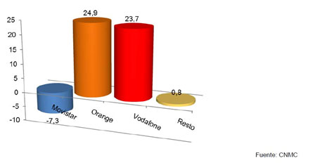 En enero, Vodafone (incluido Ono) y Orange (incluido Jazztel) ganaron en torno a las 40 mil líneas y Yoigo registró un aumento de 7.159, mientras que Movistar y los OMV perdieron líneas.