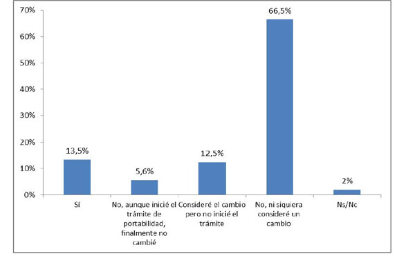 En 2015 el 13,5 por ciento de los usuarios cambiaron de operador móvil, mientras que un 12,5 por ciento consideraron hacerlo sin iniciar ningún trámite. Además, un 5,6 por ciento iniciaron el proceso de cambio pero acabaron quedándose con su operador.