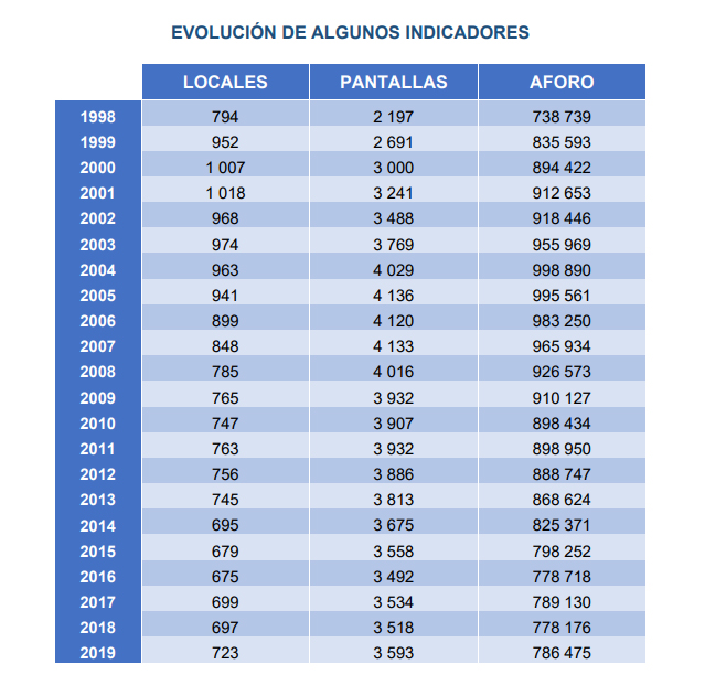 El dato más importante del censo refleja que se mantiene la tendencia positiva en los últimos 3 años en relación al crecimiento de la exhibición cinematográfica en España, si bien todavía no se llegan a igual los datos que se alcanzaban hace una década.