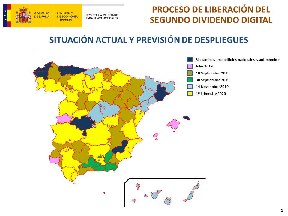 En total, con los cambios de frecuencia que empiezan el próximo 14 de noviembre, el Segundo Dividendo Digital ya estará en marcha en 3.846 municipios de toda España correspondientes a 15 comunidades autónomas. Hay que recordar que en nuestro país existen más de 8.100 municipios, por lo que se podría realizar la adaptación en prácticamente el 50% de los mismos.