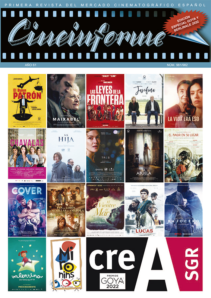 Cineinforme comienza este 2022 con una revista repleta de contenidos, entre los que destacan la cobertura bilingüe del Festival Internacional de Cine de Berlín y su mercado European Film Market o la previa de la 36ª edición de los Premios Goya, que tienen lugar en Valencia. Los lectores también pueden encontrar muchas páginas dedicadas a la exhibición, crónicas de eventos como los Premios Cineinforme-FECE o el MicroSalón AEC y una amplia entrevista a los nuevos presidentes de ADICINE, entre otros artículos.