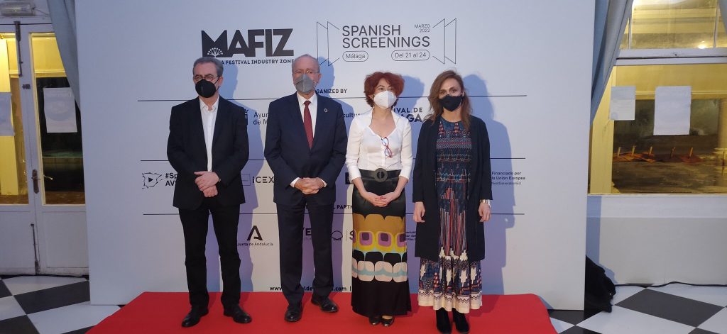 Al final del día, lejos de los focos que habitualmente no pierden detalle de la alfombra roja, el MAFIZ daba la bienvenida a los profesionales del audiovisual, más de 200 y de 46 países, que participan este año en su área de industria y especialmente en Spanish Screening XXL. Cine&Tele estuvo allí y ha elaborado una crónica de la inauguración. El acto contó con la presencia del director del Festival, Juan Antonio Vigar, y el alcalde de Málaga, Francisco de la Torre, acompañados por la directora general del ICAA, Beatriz Navas, y la consejera delegada del ICEX, María Peña Mateos. A partir de hoy lunes os ofreceremos más detalles porque comienzan las actividades de industria.