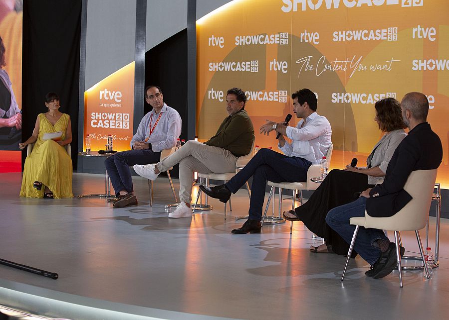 La mesa de debate sobre los nuevos proyectos de ficción de la Corporación, Coming Soon in Fiction, ha sido moderada por José Pastor, acompañado por un representante de cada uno de los cinco grandes nuevos proyectos de ficción de RTVE: Fernando Bovaira (‘Las Abogadas’), Mariela Besuievsky (Detective Touré), Javier Olivares (‘Ena’), Humberto Miró (Salón de Té La Moderna) y Gustavo Ferrada (Demokracia).