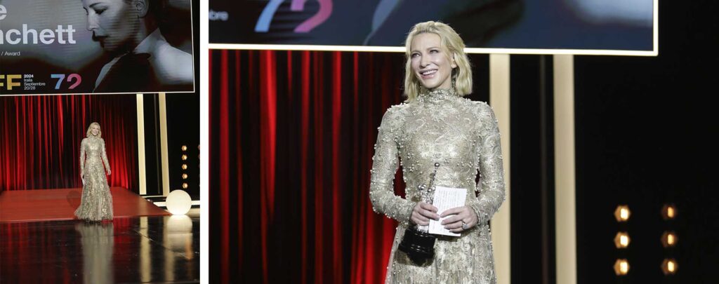 La reconocida actriz y productora australiana Cate Blanchett ha sido galardonada con el primer Premio Donostia de la 72ª edición del Festival Internacional de Cine de San Sebastián. Durante la emotiva gala celebrada en el Auditorio Kursaal, Blanchett agradeció el reconocimiento y destacó el «deseo de saber» como un aspecto central en su carrera artística.