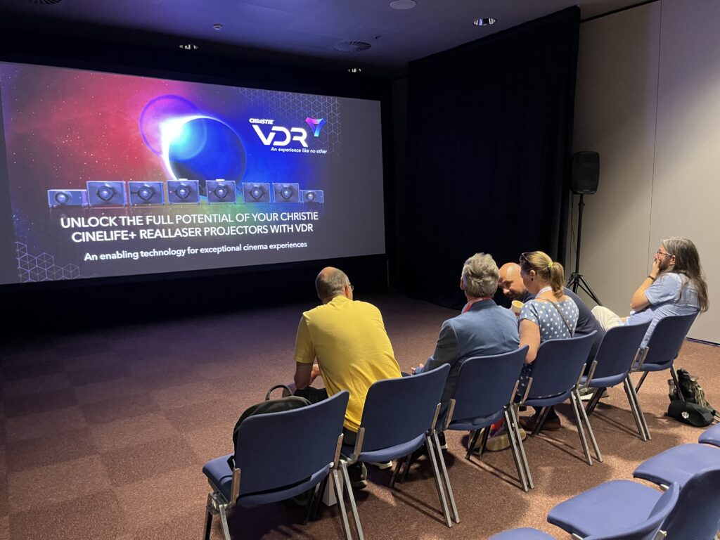 La demostración en vivo en el stand de Christie nos permitió comprobar de primera mano lo que promete esta tecnología: una mejora sustancial en el contraste, especialmente en escenas oscuras, sin necesidad de cambiar de proyector ni recurrir a contenido específico. En una sala debidamente acondicionada, las proyecciones alternaban contenido con y sin VDR activado. La diferencia era evidente: negros más profundos, mayor riqueza de matices en las sombras y una sensación general de imagen más “pura”, más cinematográfica. Todo ello, manteniendo la fidelidad del contenido original.