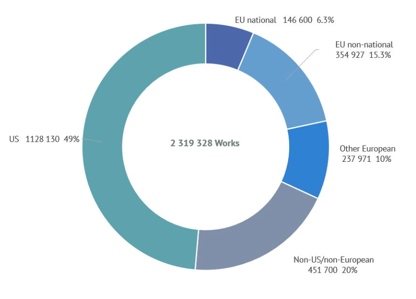• De los 2,3 millones de títulos disponibles en servicios VOD, el 32 % procede de producción europea (22 % de los países de la UE‑27 y 10 % de otros países europeos)