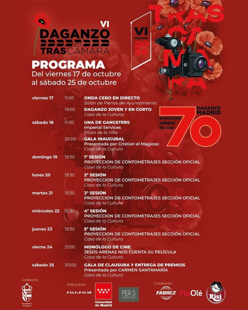 El municipio de Daganzo se prepara para vivir una nueva semana de cine con la VI edición del Festival de Cortometraje Daganzo TRASCÁMARA, que se celebrará del 18 al 25 de octubre. Organizado por la Asociación Daganzo Madrid70 con la colaboración del Ayuntamiento de Daganzo, el certamen mantiene su espíritu original: poner el foco en los profesionales del cine que no suelen aparecer en primer plano, los técnicos.